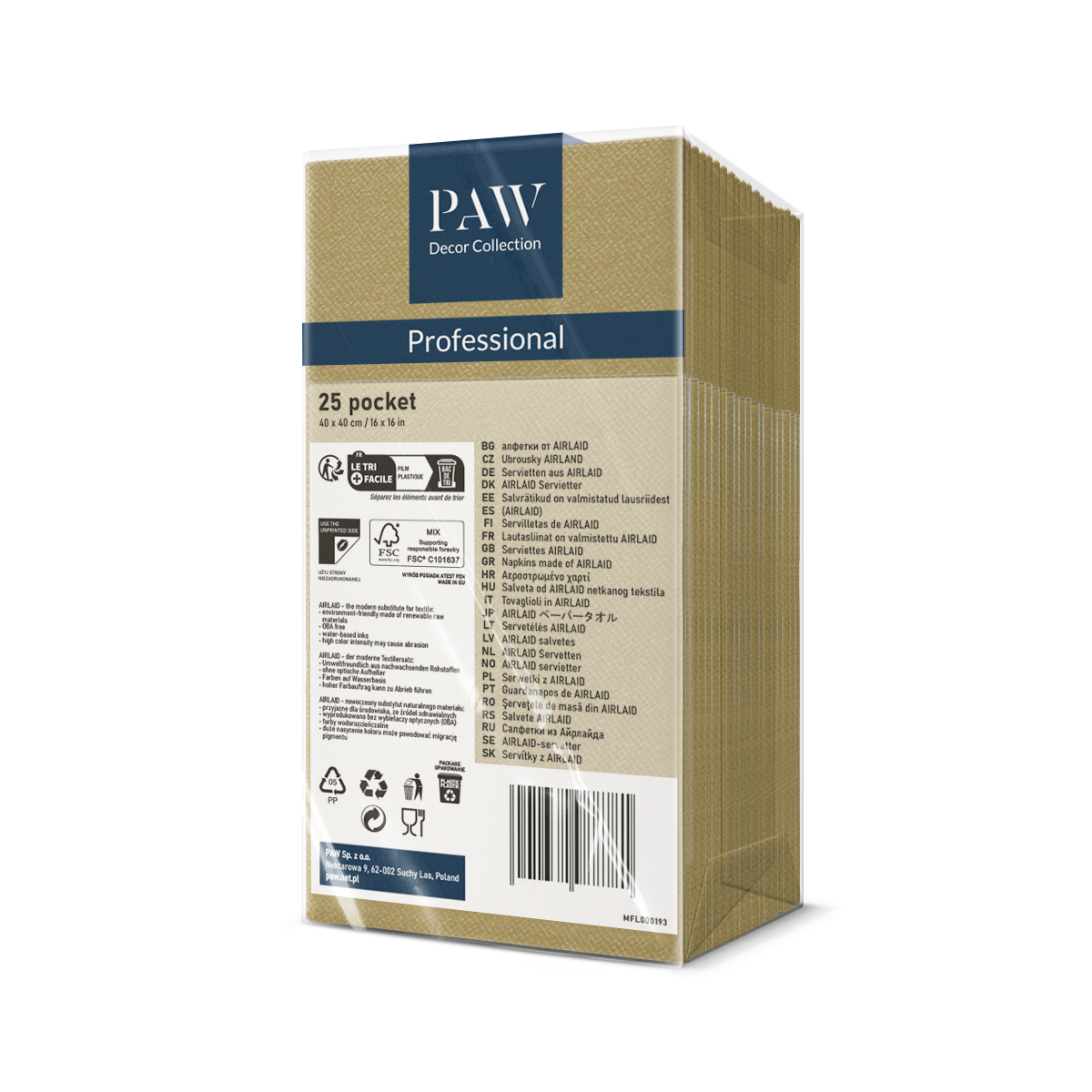 KIESZONKI PREMIUM na sztućce ZŁOTE 25 szt. AIRLAID PAW