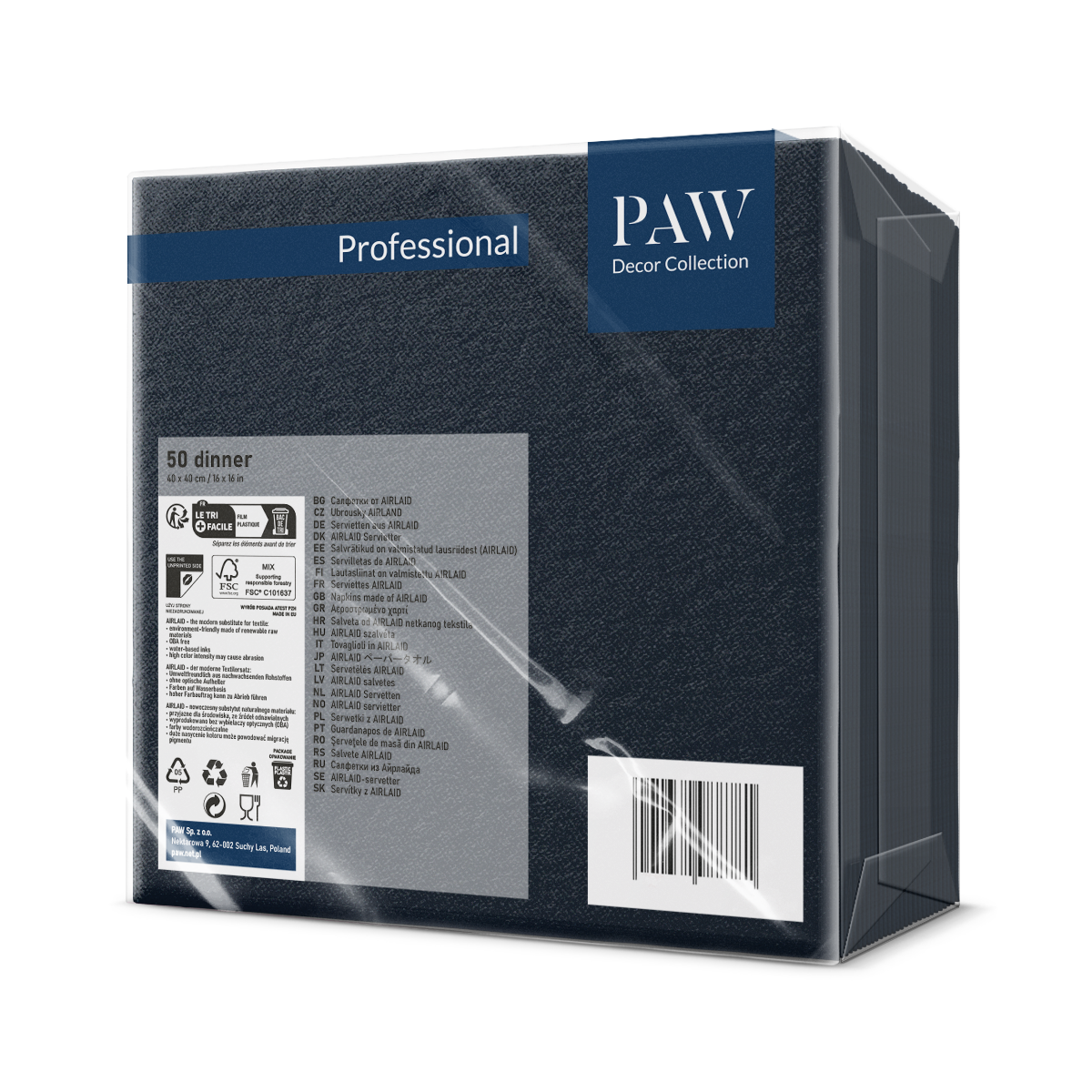 SERWETKI flizelinowe PAW 40×40 CZARNE 50 szt.
