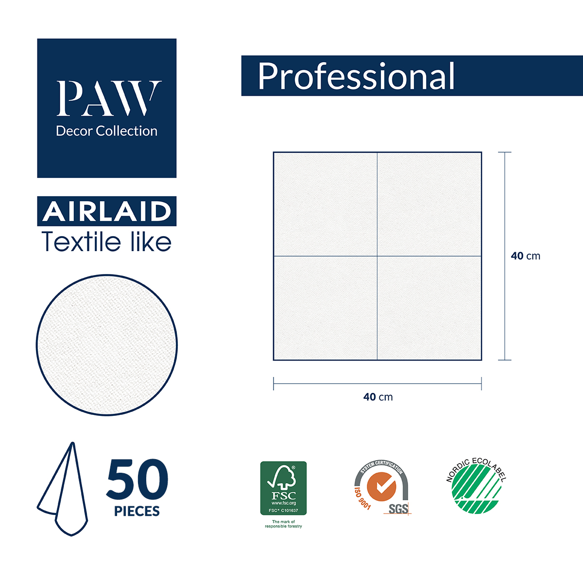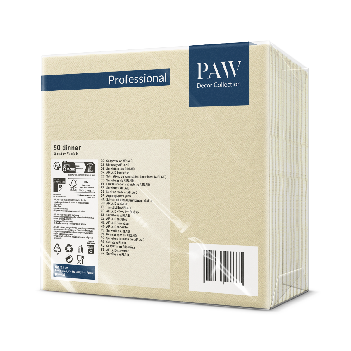 SERWETKI flizelinowe PAW 40×40 KREMOWE 50 szt.