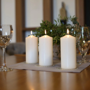 Świece walec wotywne ECRU KREMOWE 4 szt. 7h BISPOL